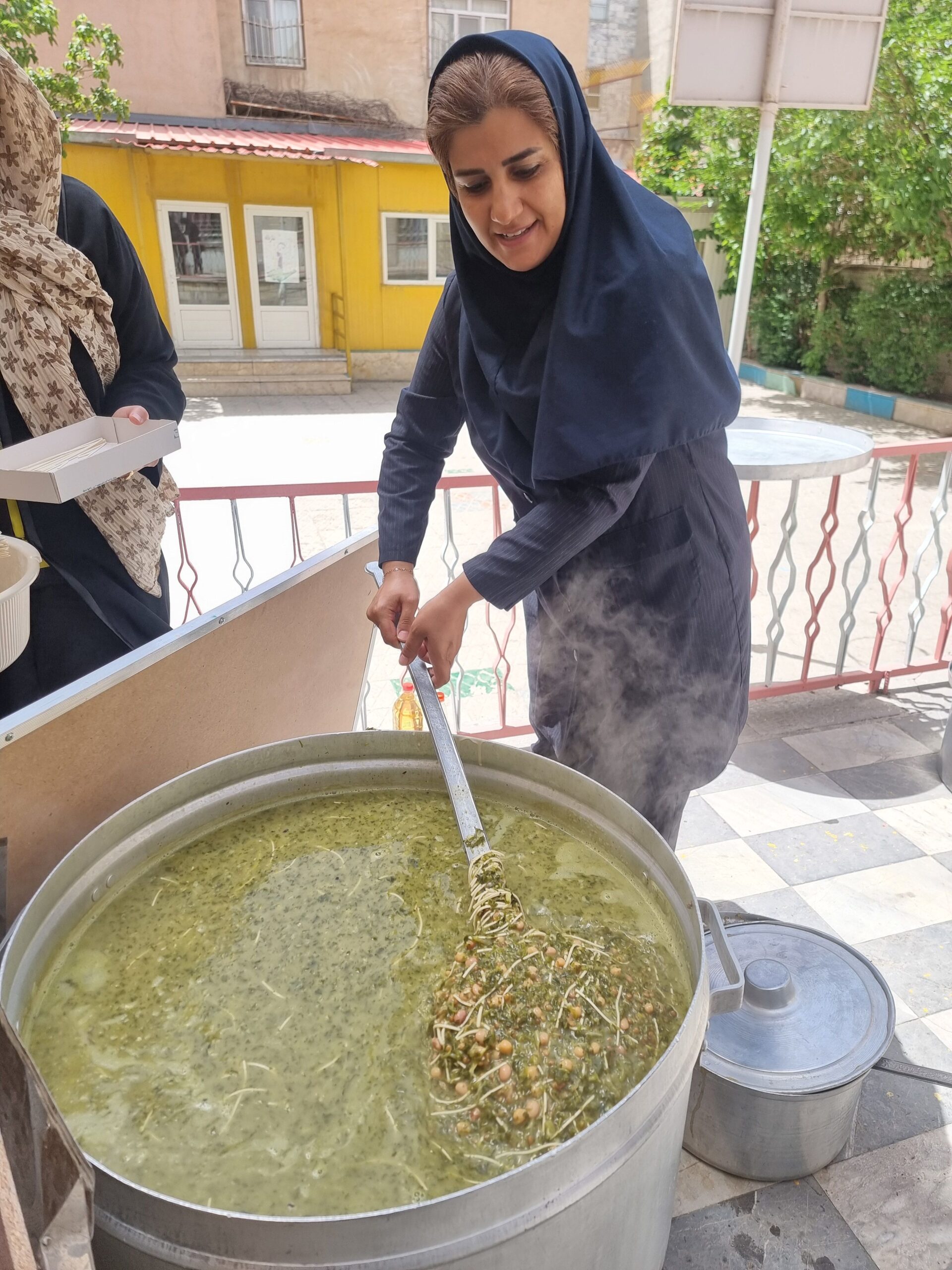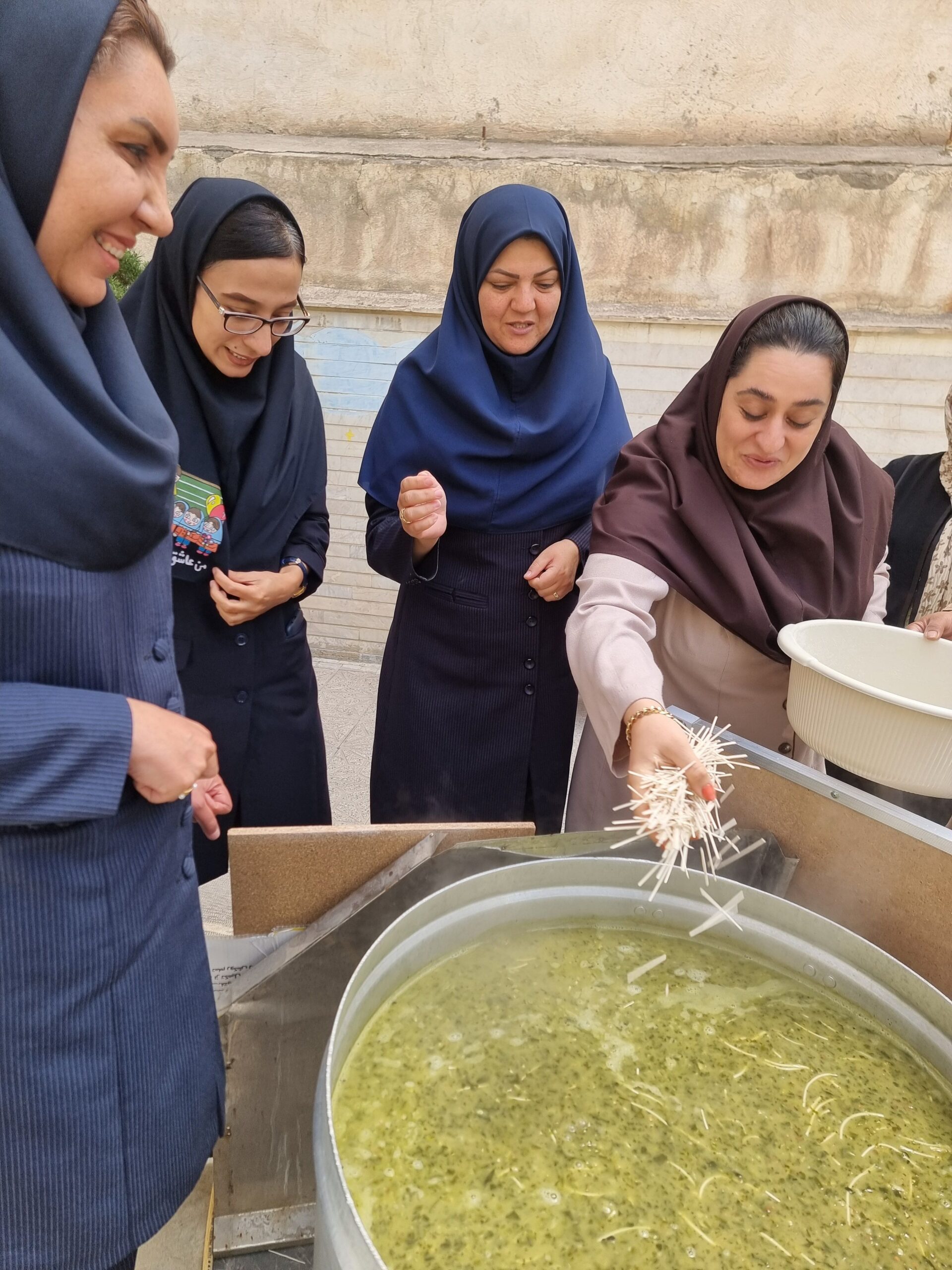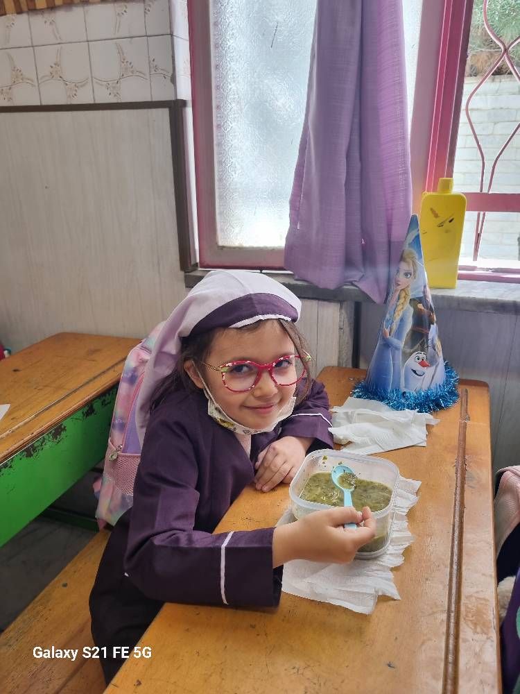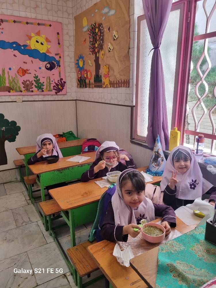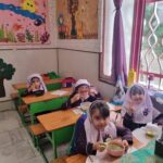 پخت آش رشته تولد امام رضا (ع) در مدرسه ابتدایی گل های خرد